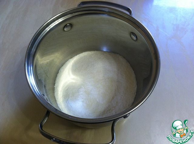В кастрюльке с толстым дном смешать крахмал и сахар.