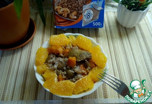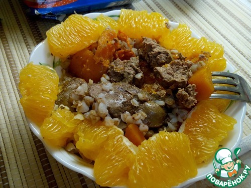 Рецепт «Теплый салат с гречкой и печенью»: