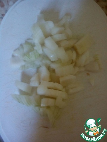 Лук можно нарезать произвольно. Я предпочитаю мелко.