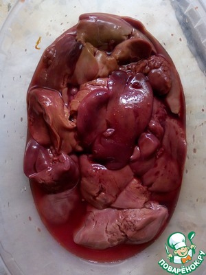 Печень промываем и отрезаем все лишнее. Для этого рецепта подойдет любая печень. Мне больше нравится куриная.