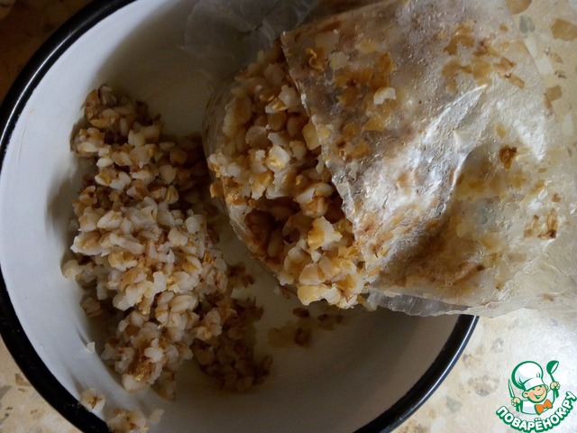 К этому времени вода вскипела, подсаливаем, опускаем пакетики с гречкой. Теперь есть 20 минут, чтобы приготовить вторую часть блюда.