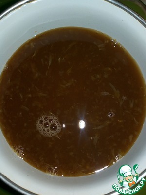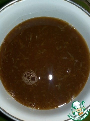Из одного апельсина выжимаем сок и смешиваем его с соевым соусом. Соль и специи добавляем по вкусу. Я не добавляла. Если используете говяжью или свиную печень, то ее можно на некоторое время замариновать в этом соусе.