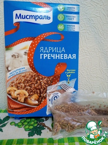Готовить мы будем с гречкой ТМ "Мистраль", ароматной, рассыпчатой, чистой. Линейка продукции в пакетиках делает приготовление максимально удобным.