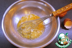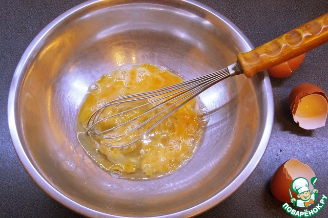Пока остальные компоненты запеканки настаиваются, варятся и жарятся, взбиваем в миске яйца с щепоткой соли и перцем (на кончике ножа). Добавляем к яйцам овсянку. Размешиваем. Цветную капусту отбрасываем на дуршлаг и высыпаем в миску с яйцами.