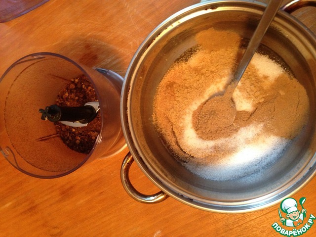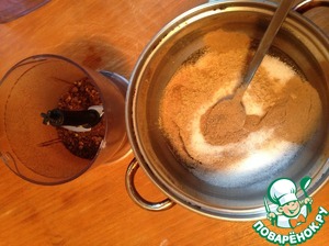 В кастрюле смешать: сахар, мёд, все специи, довести до кипения, снять с огня. Добавить соду (не гашенную). Смесь должна сильно вспениться и побелеть.