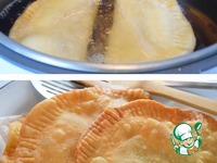В глубокой сковороде или фритюрнице хорошо раскалить масло и обжарить чебуреки с двух сторон до золотистой корочки. Вытащить на блюдо, застеленное бумажным полотенцем, чтобы убрать лишний жир. |