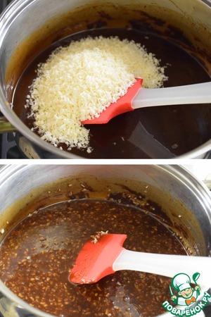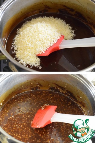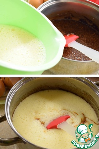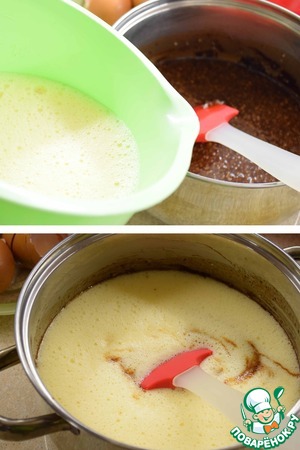 Вылить взбитые яйца в шоколадно-кокосовую смесь, перемешать.