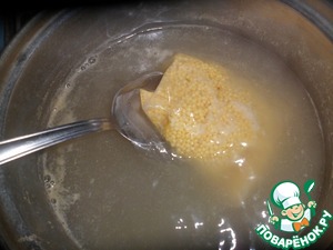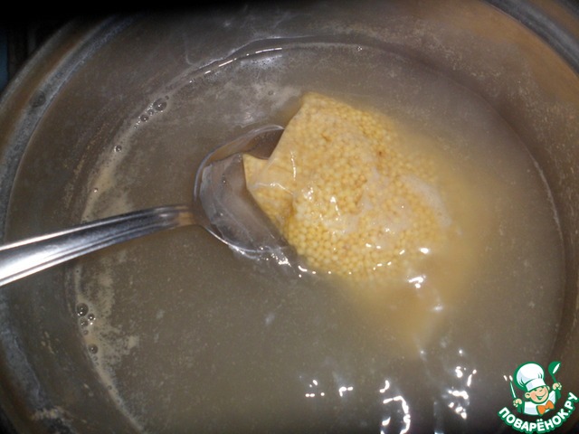 Поставить 1л воды для варки пшена с добавлением соли, поставить таймер на 15 мин, этого времени достаточно для пшена.