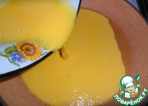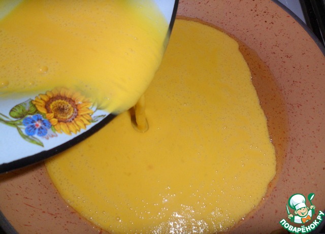 Разогреть сковороду со сливочным маслом и вылить яичную смесь.