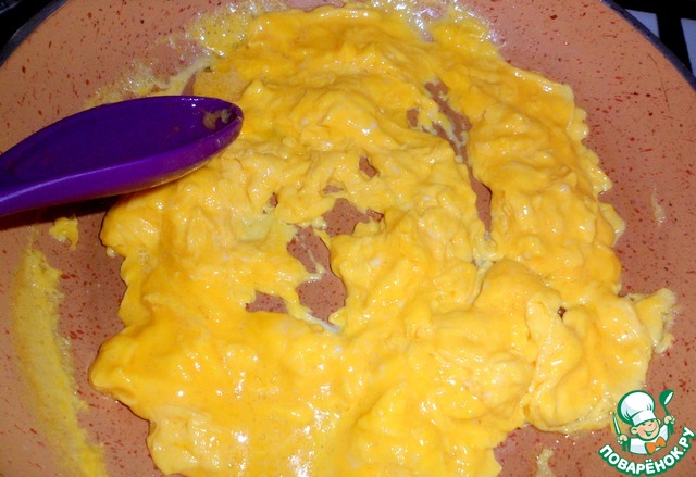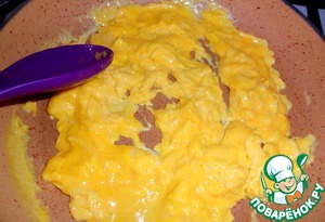 Как только начнут края запекаться, начинать перемешивать, чтоб получилась яичная кашка.