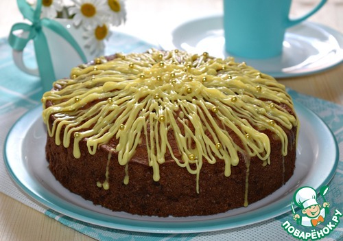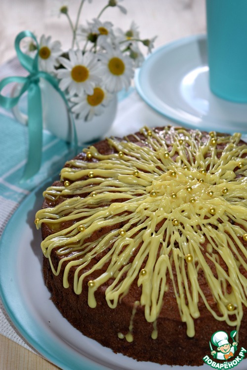 Украсить по желанию: посыпать сахарной пудрой, тертым шоколадом или орехами. Я полила пирог лимонной глазурью.
