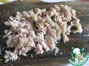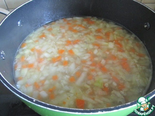 • Также поступить с мясом. Мелко нарезать и добавить в бульон.