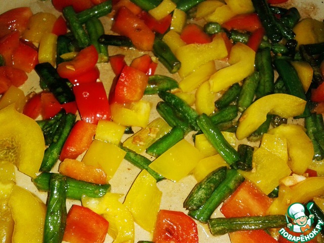 - Перец болгарский (половина красного+половина желтого) — 1 шт
