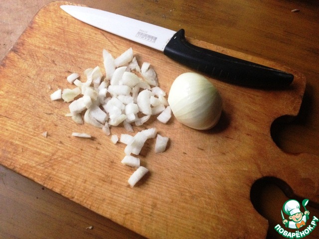 Репчатый лук очистить, нарезать кубиками.