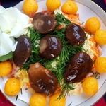 5. Равномерно раскладываем грибы шляпками вверх, получается "Грибная полянка".
