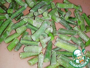 В это время на разогретую сковородку наливаем масло и выкладываем спаржу.
