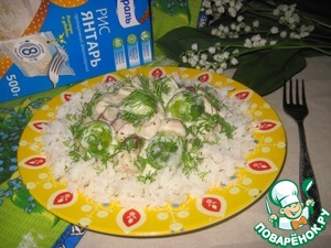 Подавать с рассыпчатым отварным рисом, посыпав мелко нарезанной зеленью (у меня укроп).
