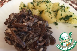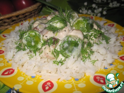 Рецепт «Грибы с брюссельской капустой в сливочном соусе»: