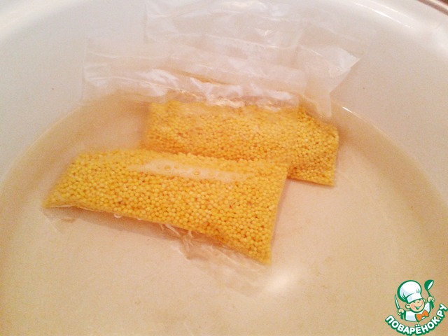 Достаньте пакетики с пшеном и дайте воде стечь.