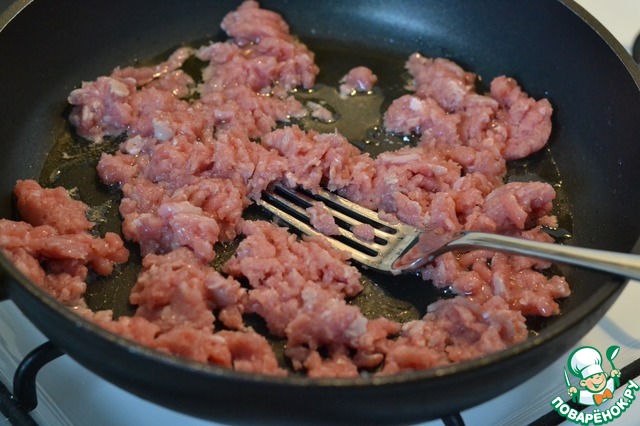 Фарш обжарить на подсолнечном масле.
