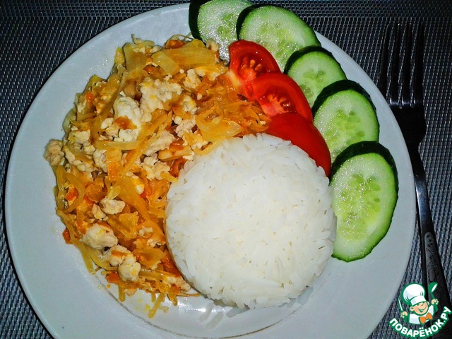 Рецепт «Рис с квашеной капустой и фаршем»: