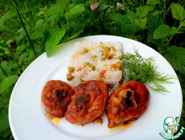 Рис с зеленым горошком и окорочками