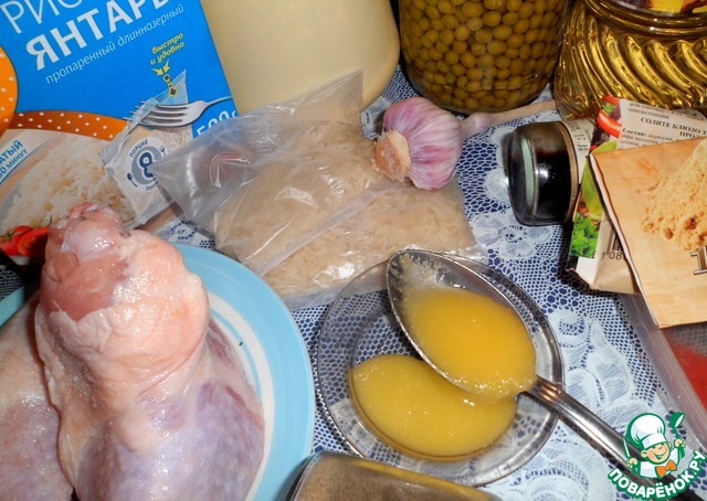 Рецепт «Рис с зеленым горошком и окорочками»:
