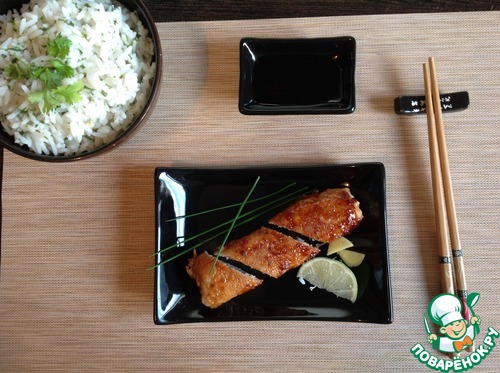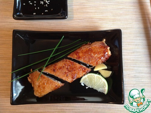 Сразу поясню: Мирин - это рисовое вино очень сладкого вкуса с низким содержанием алкоголя и его не нужно путать с рисовым уксусом. Мирин можно заменить белым вином с добавлением сахара из расчета: 1 столовая ложка мирина = 2 чайные ложки белого вина + 1 чайная ложка сахара. -