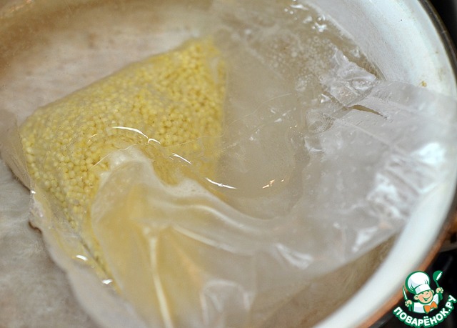 Отварим пшено. Я использую Золотое пшено в пакетиках ТМ Мистраль. Это очень удобно, просто и экономично.