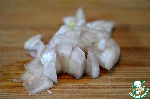 Лук нарежем кубиком.