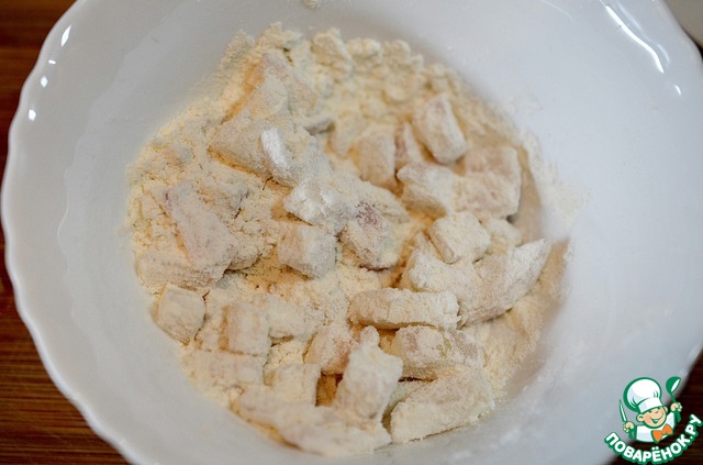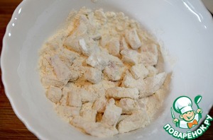Обваляем лук в муке.