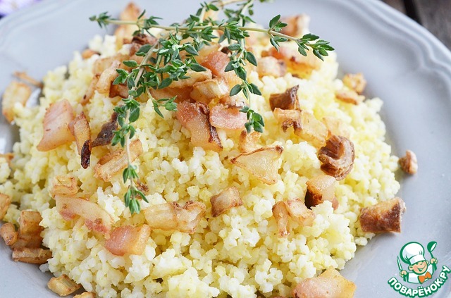 Пшено с беконом и хрустящим луком