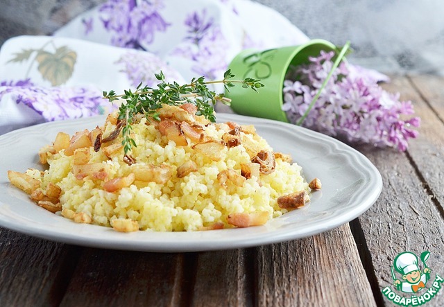 Рецепт «Пшено с беконом и хрустящим луком»:
