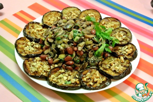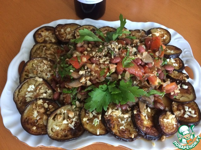 Салат из фасоли, баклажанов и грибов