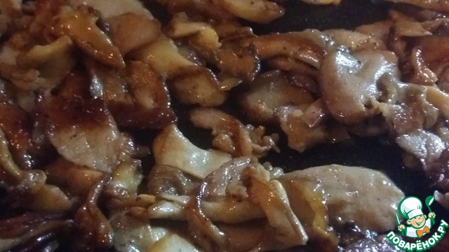 Грибы, я использовала замороженные белые, поджарить вместе с репчатым луком.