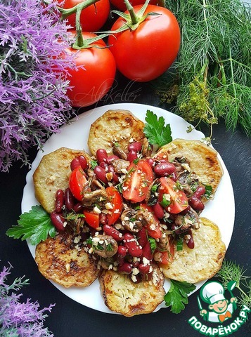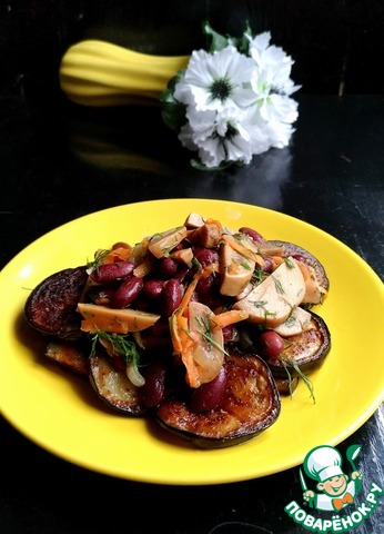 Рецепт «Салат из фасоли, баклажанов и грибов»: