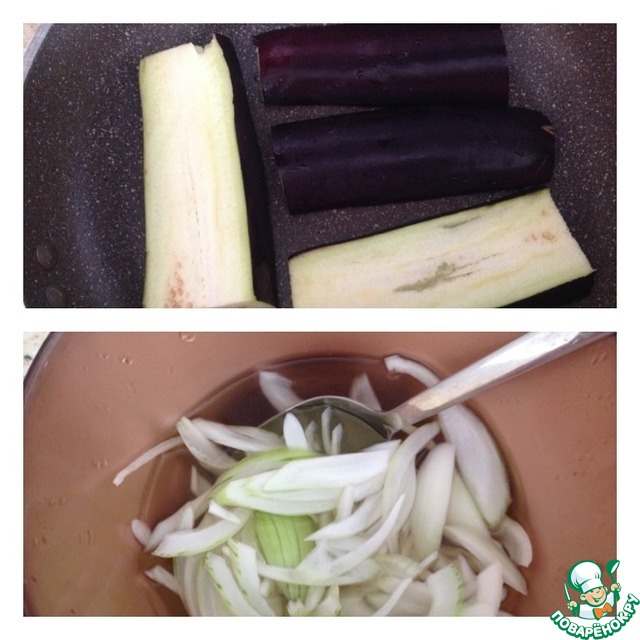 Лук нарезать полукольцами и замариновать на 15-20 минут.