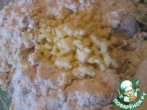 Замесить тесто, и в процессе вымешивания добавить порезанные мелким кубиком яблоки...