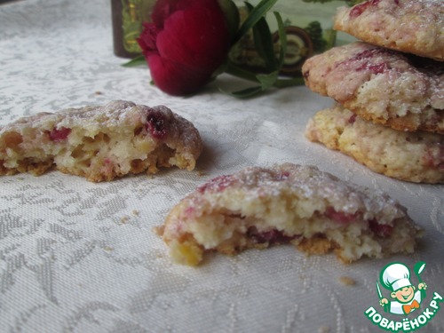 Нежное, рассыпчатое печенье с нежными яблоками и приятной кислинкой брусники.