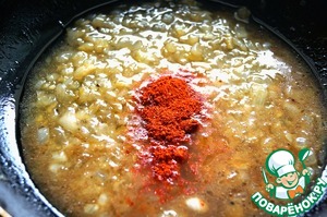 Добавляем паприку и красный перец. Можно при желании добавить до 1 ч. л. жидкого дыма. Это придаст слегка подкопчёный аромат. Гордон Рамзи использует копчёную паприку, чего и вам желаю.