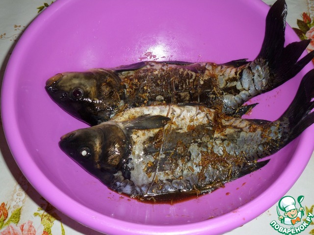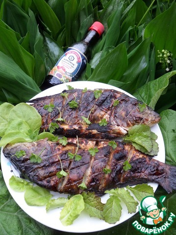 Безумно простой маринад для рыбы. В итоге отличный результат. Даже начинающийся дождь не был большой помехой при жарке рыбы - пришлось занести мангал под навес. Получилась вкусная и ароматная рыба. Пробуйте!)