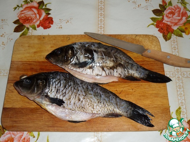 Подготавливаем продукты. Очищаем и промываем рыбу. В этот раз у меня 4 шт некрупных карпа.