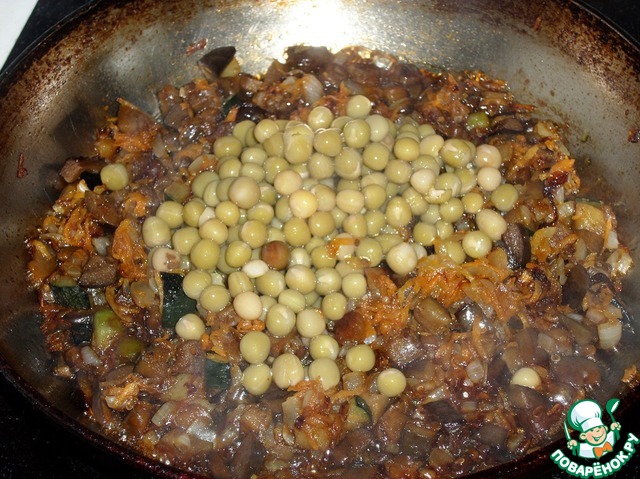 Хорошо перемешиваем и обжариваем 1-2 минуты. Убираем сковороду с огня. Остужаем массу. Начинка готова.