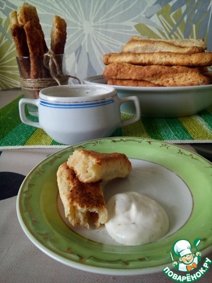 Уважаемые поварята, предлагаю сырные палочки от Дарьи Донцовой. Рецепт очень простой из доступных продуктов и вкусный! Надеюсь вы оцените.
