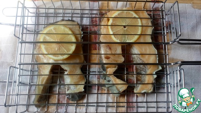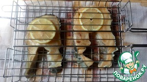 Лимоны нарежьте тонкими кружочками и выложите на решетку. Сверху положите рыбу и снова – лимоны. Готовьте рыбу с двух сторон примерно по 10 минут.