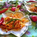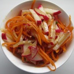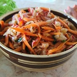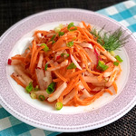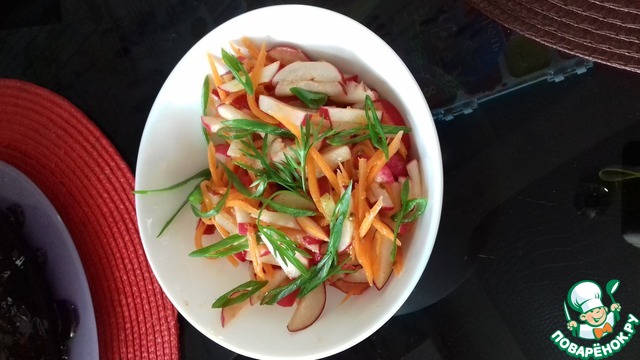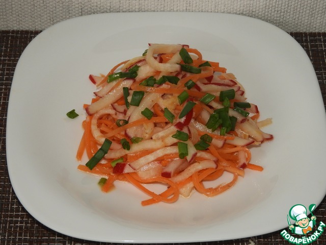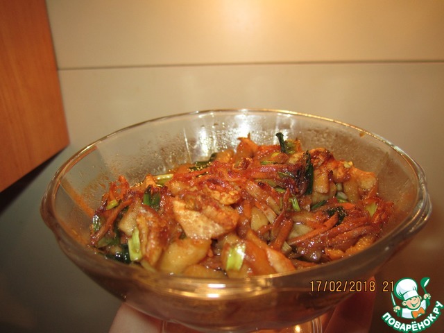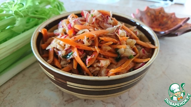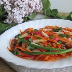 Предлагаю простой, облегченный рецепт салата. Аппетитная корейская закуска порадует вас своим вкусом. Готовится из доступных продуктов быстро и просто. Остроту салата регулируйте по своему вкусу. Салат можно разнообразить, добавив свежего огурца, кинзы, петрушки. Вариантов много, творите, экспериментируйте!!!