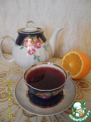 Заварник ополоснуть кипятком, положить все ингредиенты, кроме сахара. Я заваривала по разному: просто с каркаде, каркаде+черный чай и просто с черным чаем. Мне больше понравилось: каркаде+черный чай. Пробуйте, экспериментируйте по своему вкусу.