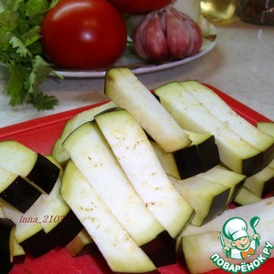 Баклажаны нарезать так, как предпочитаете. Я нарезала брусочками.