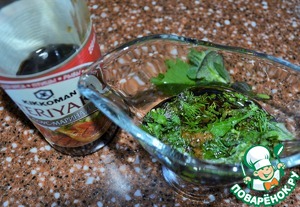 В соуснике смешать соевый соус, масло.