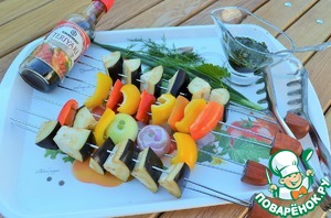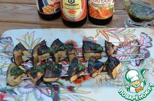 Первыми снять с мангала баклажаны и, сразу же, горячими полить соусом.